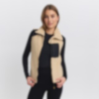 Korkeakauluksinen teddyfleeceliivi. Tikatut yksityiskohdat olkapäissä, rintataskuissa ja kauluksessa tekevät liivistä modernin ja trendikkään. Kaksi kätevää etutaskua ja rintatasku, jotka kaikki suljetaan vetoketjulla. Fairfield-logo selässä. Rento istuvuus.