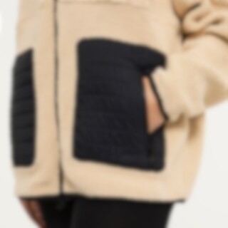Korkeakauluksinen teddyfleecetakki. Tikatut yksityiskohdat olkapäissä ja etutaskuissa tekevät takista modernin ja trendikkään. Kaksi kätevää etutaskua ja rintatasku, jotka kaikki suljetaan vetoketjulla. Selässä Fairfield-logo, vasemmassa hihassa harkittuna yksityiskohtana tyylikäs pienempi logo. Joustavat hihansuut ja helma. Rennon istuvuuden ansiosta takki sopii erinomaisesti sekä arkeen että treeniin.