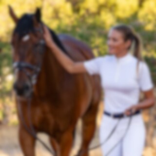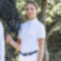 Lyhythihainen kilpailupaita teknistä materiaalia. Joustava ja myötäilevä. Edessä vetoketju, jossa strassivedin ja koristenauha.