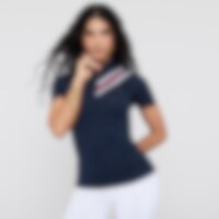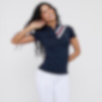 Lyhythihainen toppi pehmeää ja joustavaa teknistä materiaalia. Toimiva muotoilu, jossa vartalonmyötäinen leikkaus. Pystykaulus, jonka ansiosta toppi sopii niin harjoitteluun kuin kilpailuun. Olkapäillä olevat raidat antavat urheilullisen ilmeen. Edessä pi