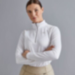 Pitkähihainen tekninen paita, jossa vartalonmyötäinen istuvuus. Harjattu sisäpinta on pehmeä ja miellyttävä ihoa vasten. Kauluksessa vetoketjukiinnitys. Kimaltavat verkkosomisteet olalla edessä, kauluksessa vetoketjukiinnitys. Rinnassa strassikivin koristeltu JH logo.