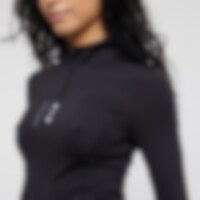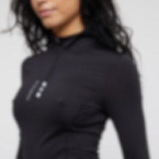 Pitkähihainen tekninen paita, jossa vartalonmyötäinen istuvuus. Pehmeä ja joustava vaate on mukava ja antaa liikkumisvapautta. Pystykaulus, jossa edessä vetoketju. Koristeellinen logokumipainatus ja kudotut yksityiskohdat edessä.
