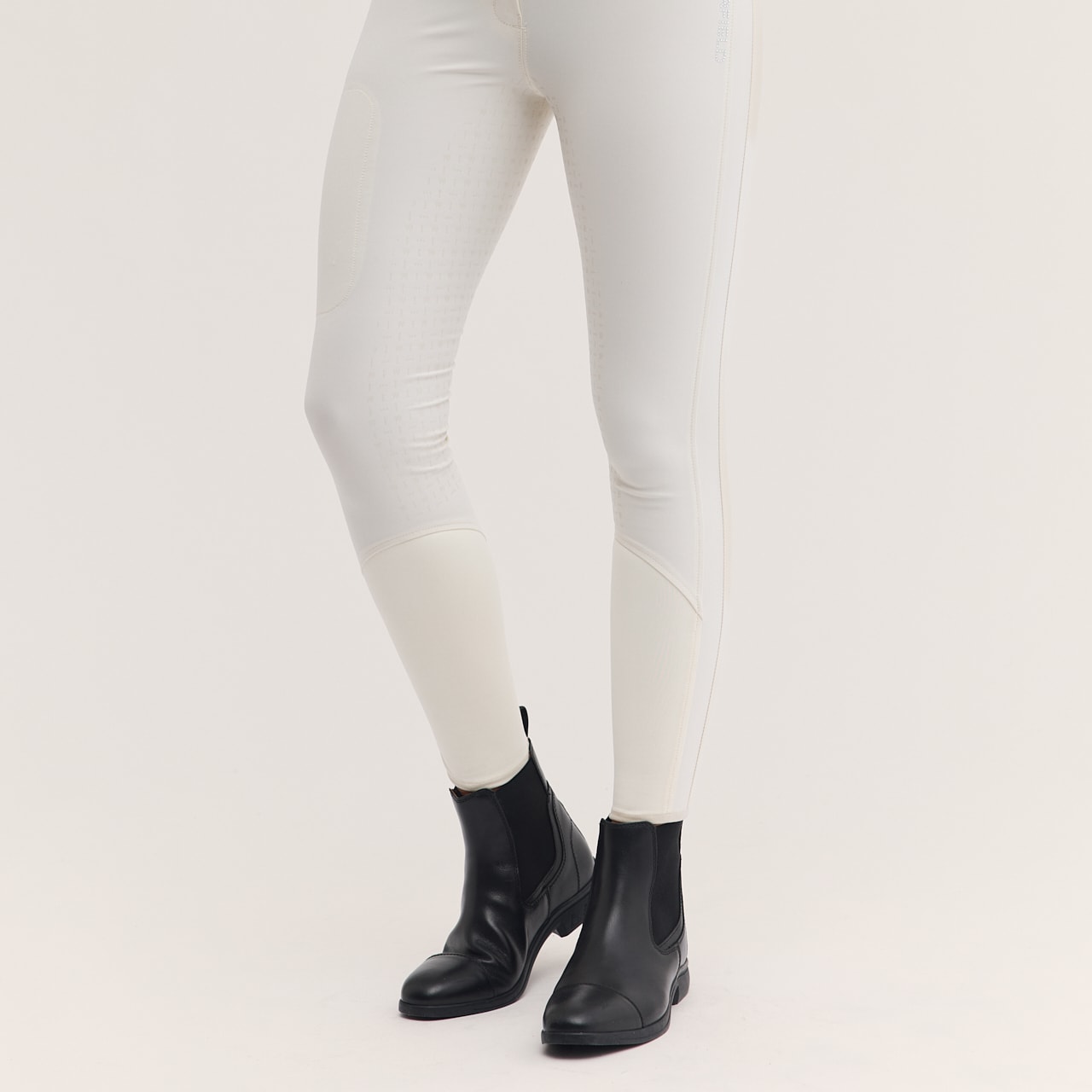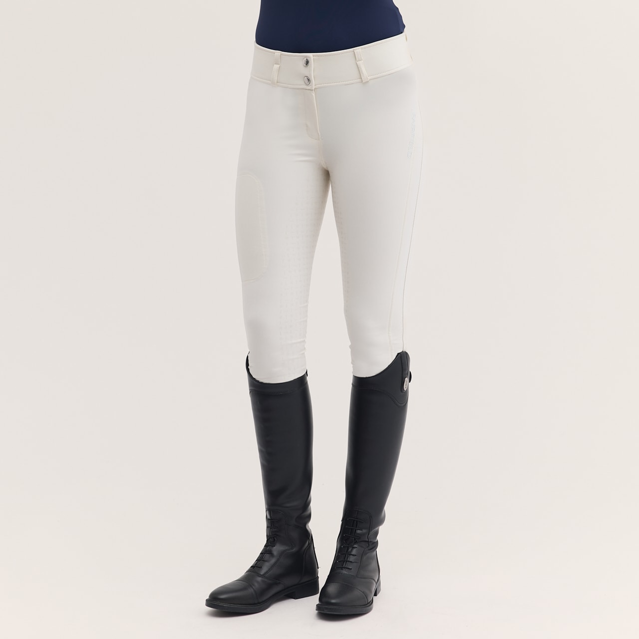 Ratsastushousut nopeasti kuivuvasta, hengittävästä teknisestä materiaalista. Myötäilevä, joustava materiaali. Kokopaikkaiset ratsastushousut antavat pehmeän pidon satulassa. Normaali vyötärö kaksinkertaisilla napeilla, jotka varmistavat, että ratsastushou