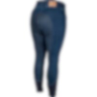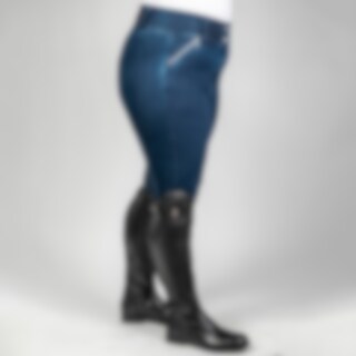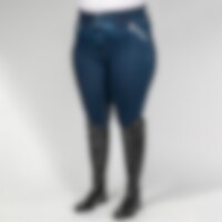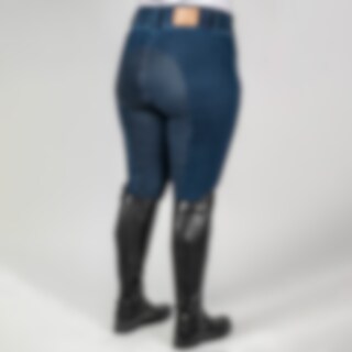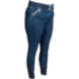 Joustavat kudotut denimratsastushousut kokoon 54 saakka. Kokopaikat takaavat pidon. Korkea, leveä vyötärö ja mukavat joustavat lahkeensuut. Edessä vetoketjutaskut.