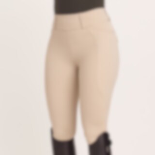 Mukavasta ja helppohoitoisesta teknisestä materiaalista valmistetut tyylikkäät ratsastuslegginsit, joissa on satulaleikkaus. Pehmeät ja mukavat legginsit pitävät hyvin muotonsa. Normaalikorkuinen vyötärö, jonka leveä vyötärönauha lisää mukavuutta. Vyölenkit ja läppätasku takana antavat ratsastushousuille ylellisen ilmeen. Edessä syvät taskut tilaa puhelimelle. PU-kokogrippipaikat antavat hyvän ja mukavan pidon satulassa. Tyylikäs muotoilu tekee siitä sopivan sekä harjoitteluun että kilpailuun.