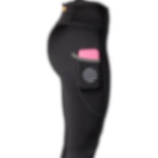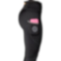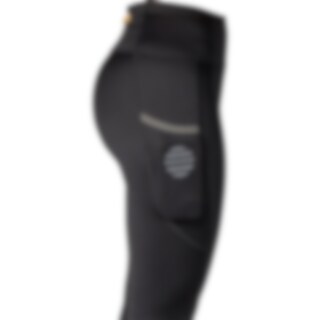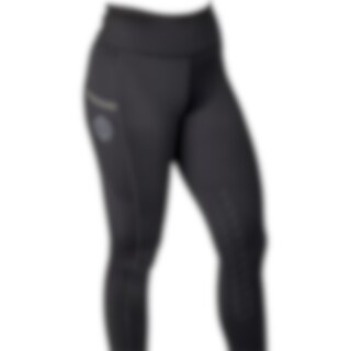 Ratsastuslegginsit, joissa pehmeä harjattu sisäpinta. Grippipolvipaikat. Sivuilla reisitaskut puhelimelle. Vetoketjutasku takana vyötäröllä. Heijastava tekstilogo.