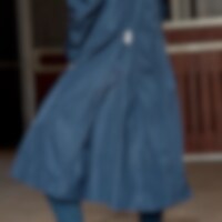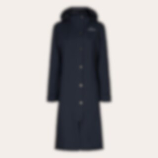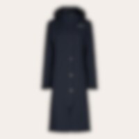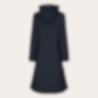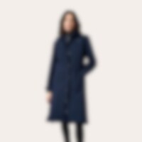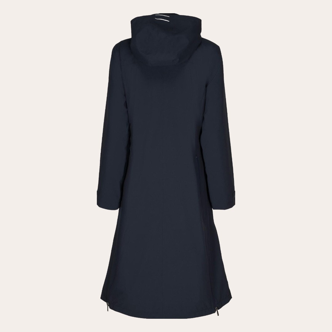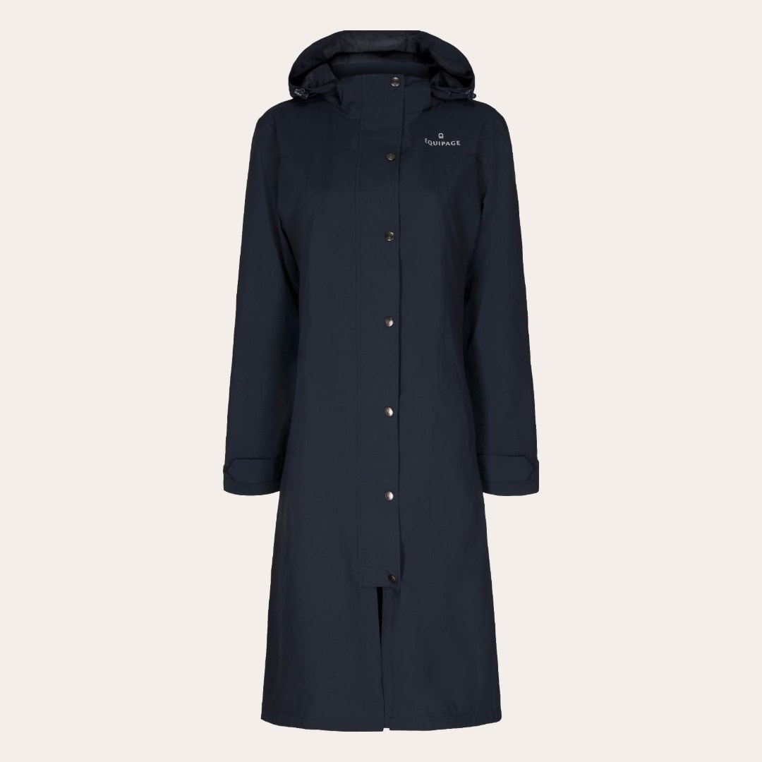 Pitkä, vuorattu vedenpitävä sadetakki, jossa on etuosa