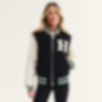Retrohenkinen baseball-takki logoyksityiskohdilla. Takki on valmistettu paksummasta kudotusta polyesteristä, ja sen sisäpuolella on tikattu vuori. Hihat PU-keinonahkaa. Ribatut hihat, helma ja kaulus.