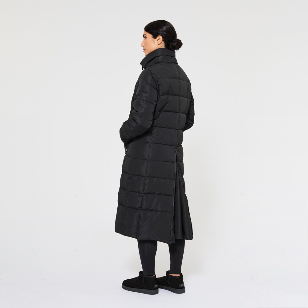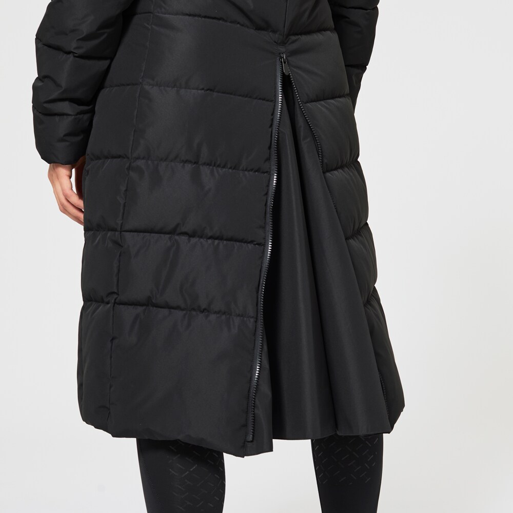 Pitkä lämminvuorinen takki, jossa korkea fleecevuorattu kaulus. Tyylikäs muotoilu. Kaksi vetoketjullista taskua, kaksi painonapillista rintataskua ja yksi sisätasku. Kaksisuuntaisen vetoketjun ja takahalkion ansiosta takki sopii myös ratsastukseen. Hihansuissa resori. Takissa on likaa ja vettä hylkivä Rudolf Bionic Finish Eco ‑käsittely.