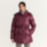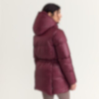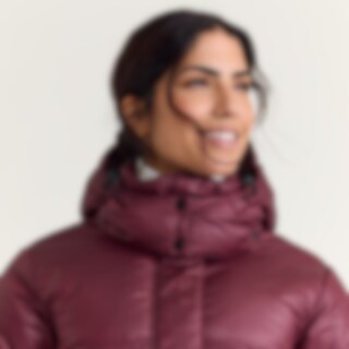 Talvitakki, joka pitää sinut lämpimänä kylmimmissäkin olosuhteissa. Kiiltävä pinta. Kierrätetystä polyesteristä valmistetussa pehmusteessa on ominaisuuksia, jotka jäljittelevät ja antavat untuvan tunteen.