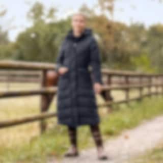 Pitkä tikattu ratsastustakki, jossa untuvamainen täyte. Kevyesti vartalonmyötäinen istuvuus. Valmistettu hengittävästä, tuulta ja vettä hylkivästä polyesterikankaasta. Irrotettavan hupun taittuva suojus suojaa sateelta. Kaksi suurta läpällistä taskua, joissa on läpät ja painonapit sekä fleecevuori, joka pitää kädet lämpiminä. Kaksi rintataskua vedenpitävällä vetoketjulla. Heijastavat yksityiskohdat logopainatuksella. Kappans ratsastushousuissa on sisäpuolella ratsastusaukot ja vetoketjulliset päät satulan yläpuolella, jotka estävät nahan vahingoittumisen. Käytännöllinen vetoketjullinen sisätasku. Hihansuiden sisäpuolinen uurrettu reunus antaa miellyttävää mukavuutta. Painonapeilla säädettävät sisäiset jalkalenkit.