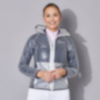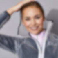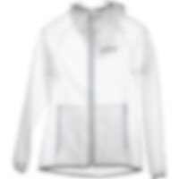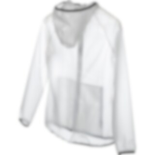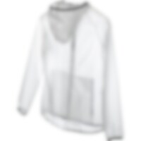 Läpikuultava, vedenpitävä sadetakki. Kaksi vetoketjutaskua edessä, kiinteä huppu.