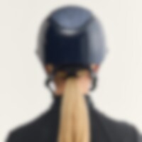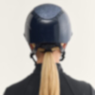 Ratsastuskypärä kiiltävällä metalliviimeistelyllä, koristeltu keskilevy ja koristeellinen yksityiskohta reunan yläpuolella. Kevyt paino ja ilmanvaihto edessä ja takana tarjoavat kypärän, joka on mukava koko ratsastusistunnon ajan. Säädettävissä ruuvilla t