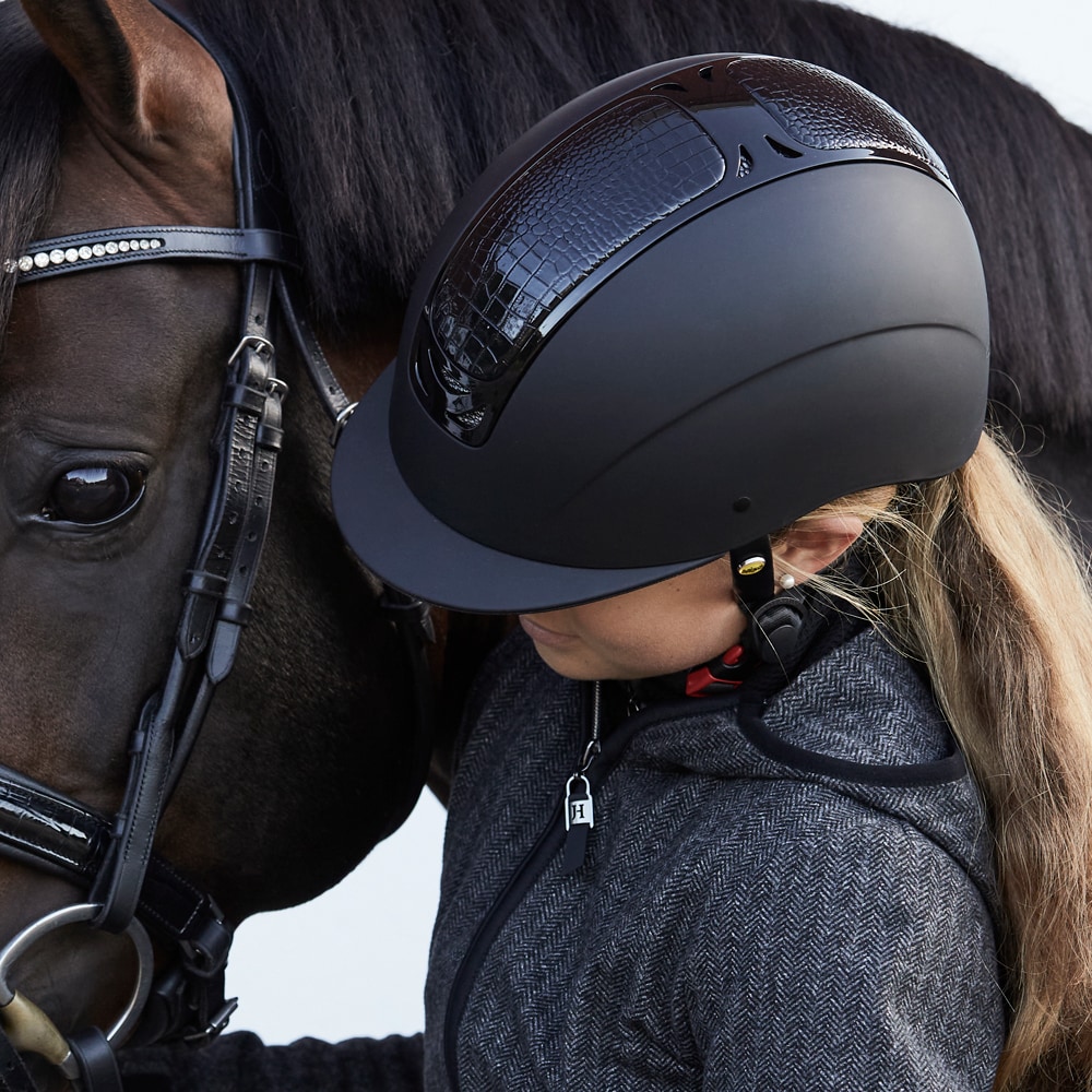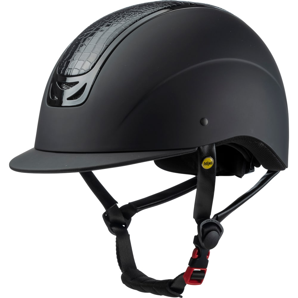 Ratsastuskypärä MIPS-järjestelmällä, joka jäljittelee ihmisen pään omaa turvajärjestelmää. Kun päähän kohdistuu vinoja iskuja, aivot liikkuvat aivo-selkäydinnesteessä, joka vaimentaa aivoihin kohdistuvia voimia. MIPS-teknologia perustuu integroituun pienikitkaiseen kerrokseen, joka voi tietyissä tapauksissa absorboida osan vinon iskun energiasta, joka voisi muuten aiheuttaa aivovaurion. Irrotettava ja pesunkestävä vuori. Takana säätönappi. S: 52-54 cm. M: 55-57 cm. L: 58–60 cm. Leukahihna PU-materiaalia.