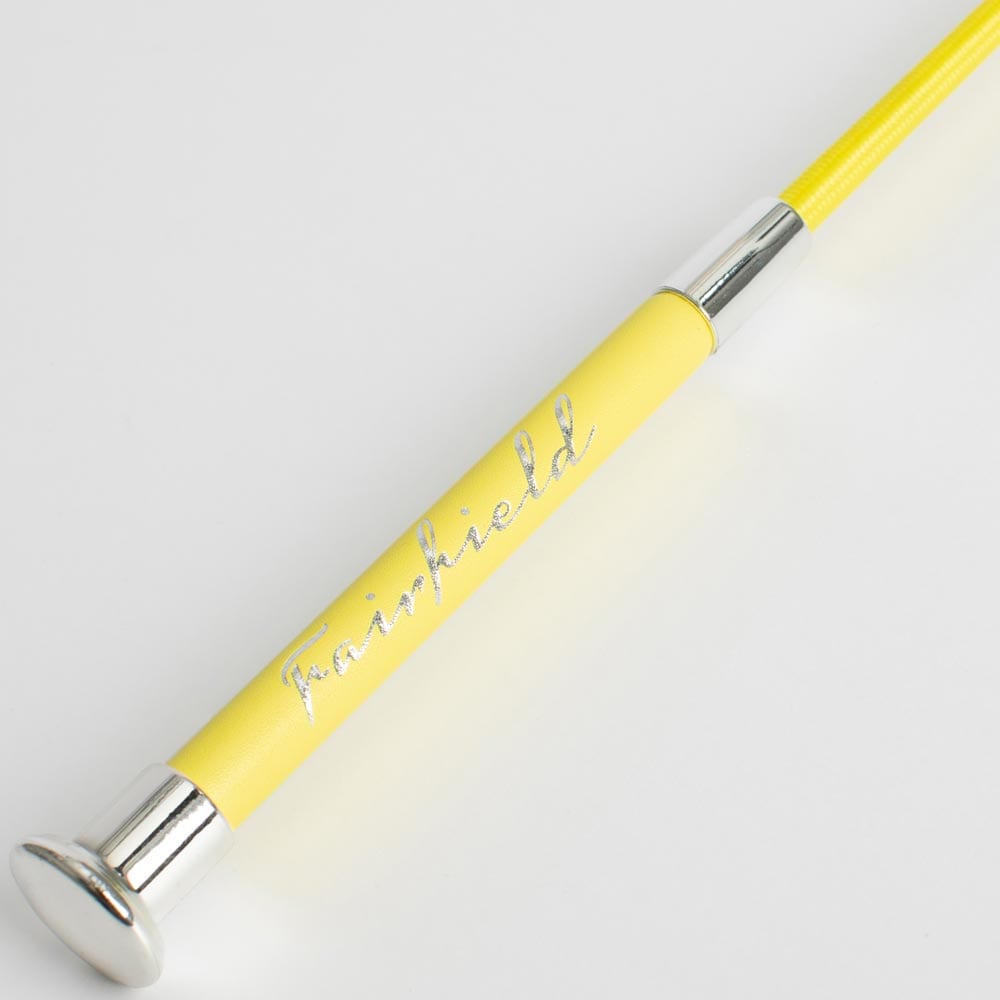 Kevyt kouluratsastus-/yleisraippa, jossa keinonahkakahva ja hopeanvärinen muovinuppi.
