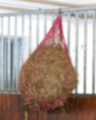 Heinäverkko, pienisilmäinen 5 x 5 cm. Ilman metallirenkaita. Tilavuus noin 6 kg heinää. Korkeus 100 cm.