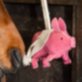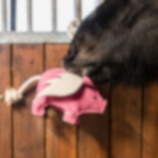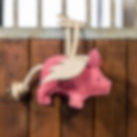 Karsinalelu kestävää, pehmeästi pehmustettua mokkanahkaa, joka on possun muotoinen. Noin 25x17 cm.