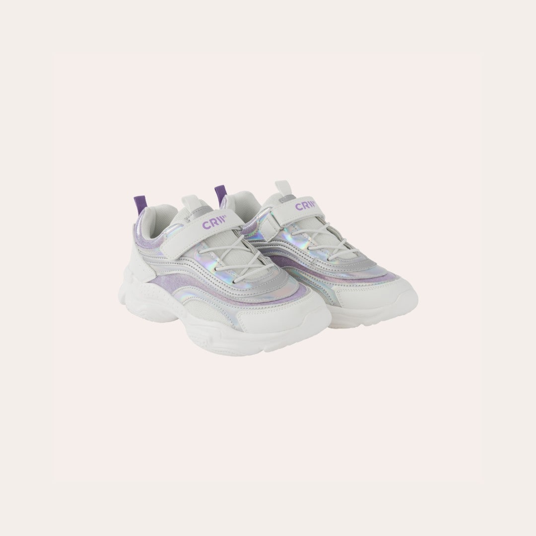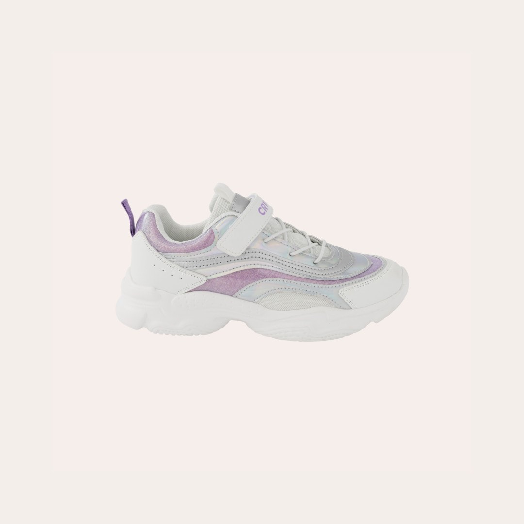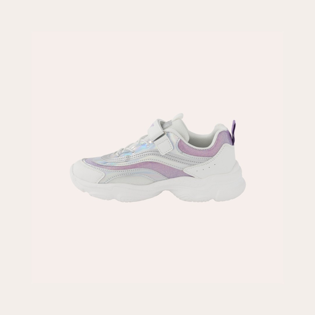 Tennarit synteettisestä materiaalista, joissa luonnonvärinen ulkopohja. Sivulla koriste kontrastivärissä.